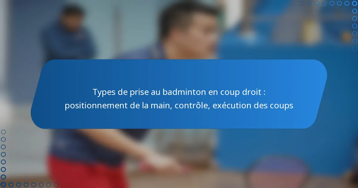 Pour exécuter efficacement des coups en utilisant des prises de coup droit en badminton, concentrez-vous sur le bon positionnement des mains, les techniques de contrôle des coups et les stratégies d’exécution claires. Maîtriser ces éléments améliorera votre performance et votre cohérence pendant le jeu.