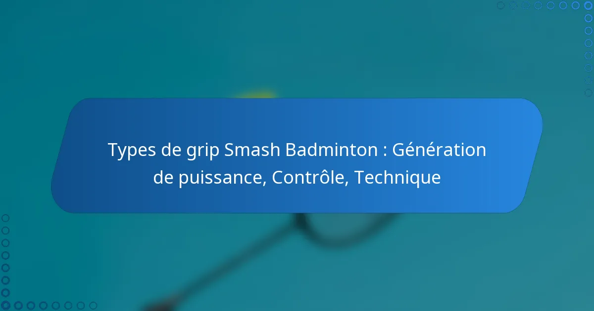 Les types de poignées courants en badminton incluent la poignée de base, la poignée coup droit et la poignée revers. Chaque type a un but spécifique et est adapté à différents coups, influençant l’efficacité avec laquelle un joueur peut frapper le volant. Comprendre ces poignées est crucial pour les joueurs cherchant à améliorer leur technique et leur jeu global.